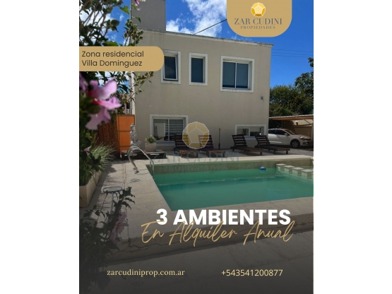 ALQUILER ANUAL 3 AMBIENTES CON PISCINA EN VILLA DOMINGUEZ